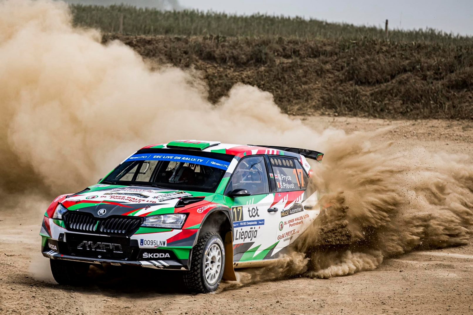 After almost an hour and a half of flat-out competition, Osian Pryce finished just 32.1 seconds away from a top 10 finish on the Tet Rally Liepāja in only his second FIA European Rally Championship event in a Škoda Fabia Rally2.